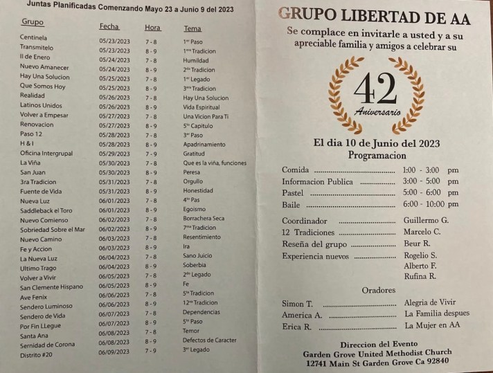 Juntas diarias de 7:00pm- 9:00pm,